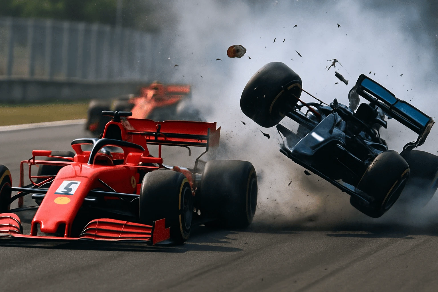 Schumacher ran wide at Turn 5, striking the concrete wall. His Benetton was visibly damaged, and he slowed as though preparing to retire. Hill, unaware of the incident as he rounded the blind corner, seized the opportunity and dived for the inside. Schumacher reacted instantly — and controversially — steering into Hill’s Williams. The collision broke Hill’s front-left wishbone and pitched Schumacher into the barriers.